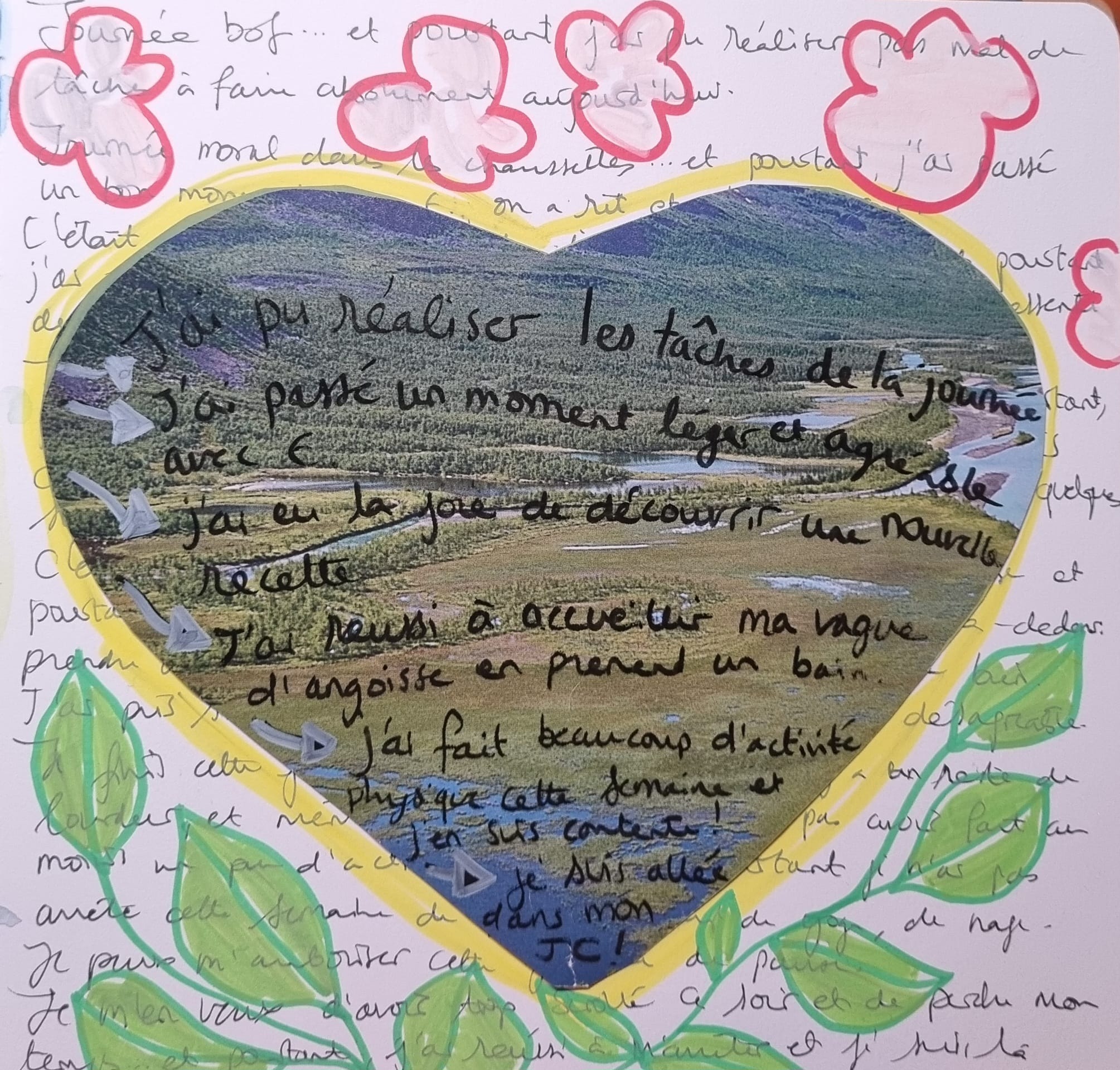 Une des grandes forces de cette approche est qu’elle s’inspire de l’art-thérapie, des dernières recherches en développement de la créativité et des techniques d’écriture créative. Notre journal devient un espace où l’on peut se ressourcer, déposer son stress, voir plus clair pour prendre de meilleures décisions et surtout se connecter à soi.