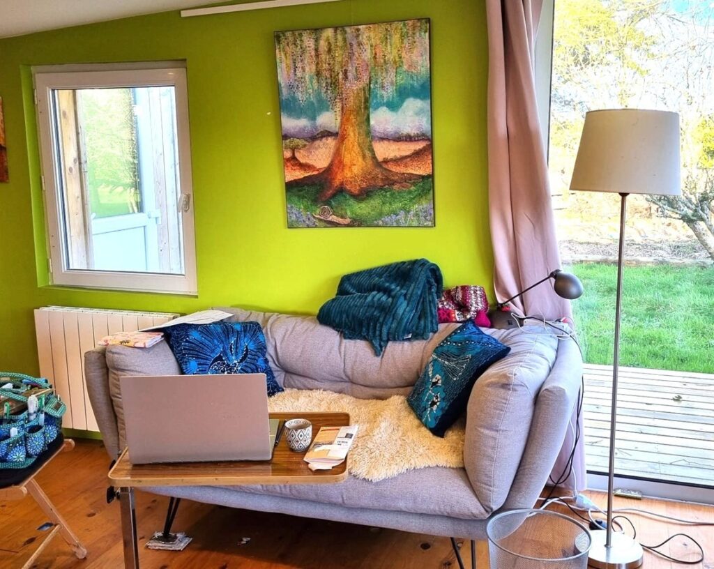 Et là, tout à coup, l’évidence est arrivée : m’acheter un sofa d’occasion et un ballon de yoga, pour m’offrir d’autres options que d’être toujours assise à table. Rien d’extraordinaire en soi… et pourtant, ces deux petites actions ont absolument tout changé !!! Elles ont ramené une toute nouvelle vie, non seulement dans mon atelier, mais aussi en moi, dans mon flux créatif. D’ailleurs, je ne me mets plus au bureau tellement je suis bien dans mon sofa 😅 Et je me plais à faire des « siestes créatives » pour laisser venir mes idées quand je bloque 😅